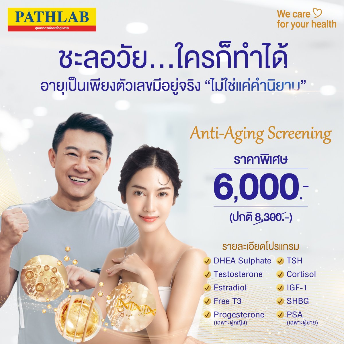 ให้อายุเป็นเพียงแค่ตัวเลขที่ไม่สามารถทำอะไรต่อร่างกายคุณได้ ด้วยการหันมาดูแลสุขภาพให้เหมาะสมกับวัย เพื่อชะลอความเสื่อมของอวัยวะภายในร่างกาย และการได้เป็นเจ้าของสุขภาพดีแบบยืนยาว