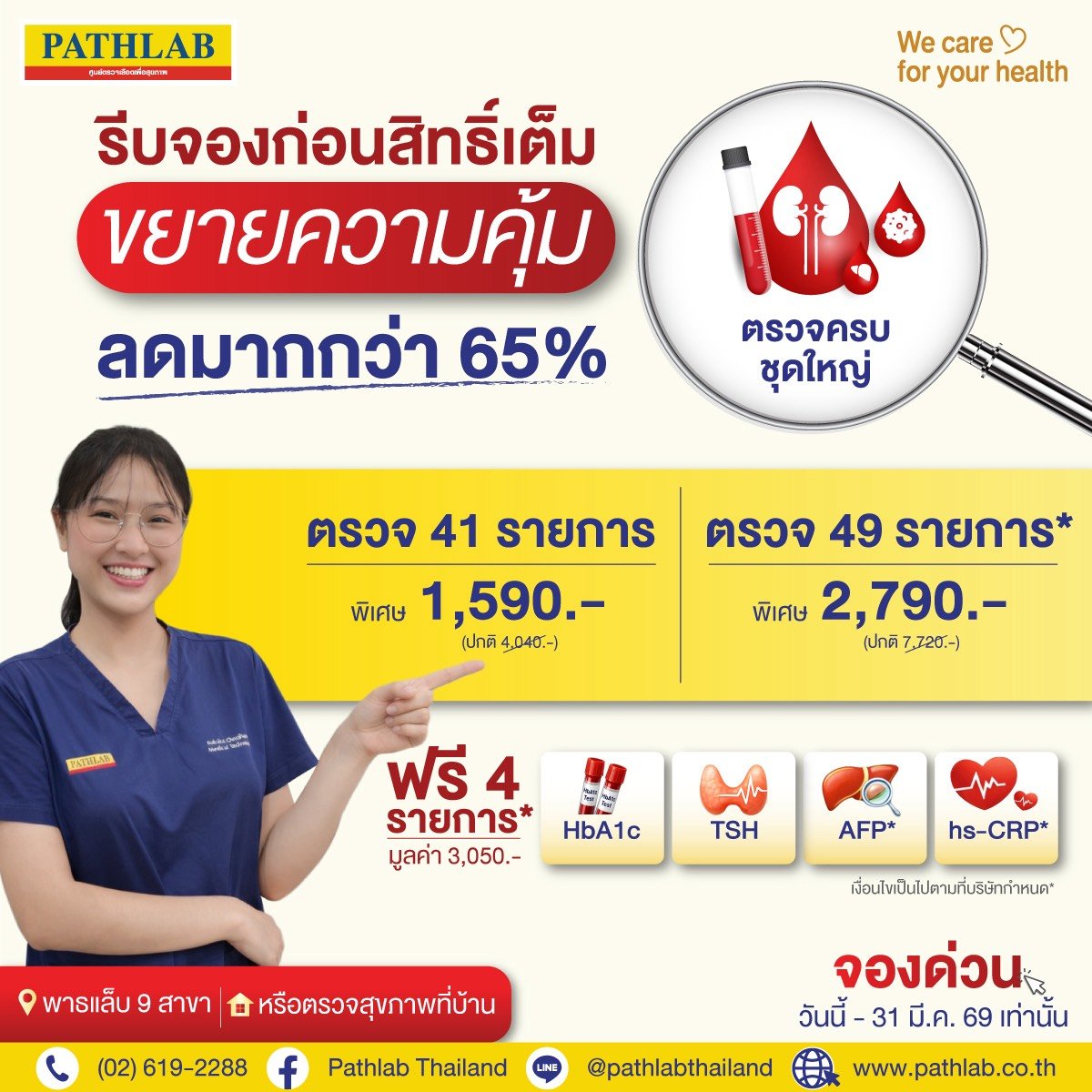เหมาะสำหรับทุกช่วงวัย ที่พาธแล็บทั้ง 9 สาขา หรือเลือกตรวจที่บ้านคุณ